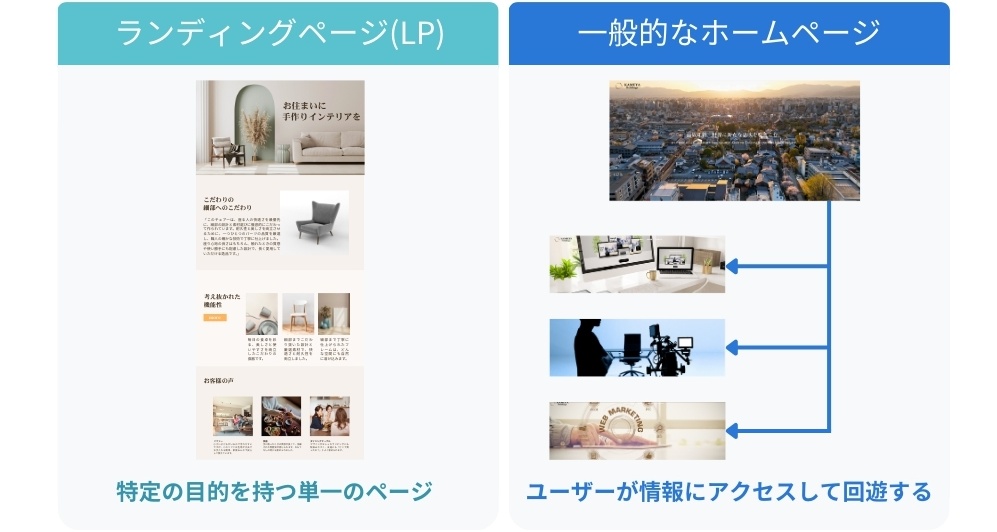 ランディングページ(LP)とホームページは、目的と構成に大きな違いがあります。