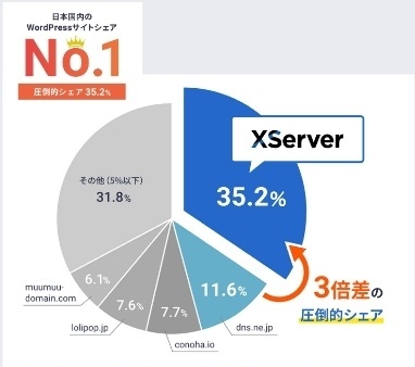 ※2025年6月、Dataprovider.com 調べ。国内でWordPressを利用して運用されているサイトのDNS NSを集計した結果によるもの。