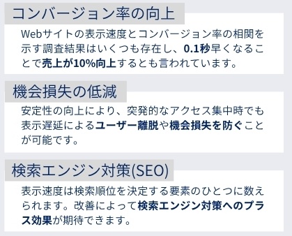 エックスサーバーの最新技術「オールNVMe」ストレージや強力なCPU・メモリリソース保証により、多くのアクセスがあってもサイト表示が遅くなりにくく、スムーズな運営が可能です。