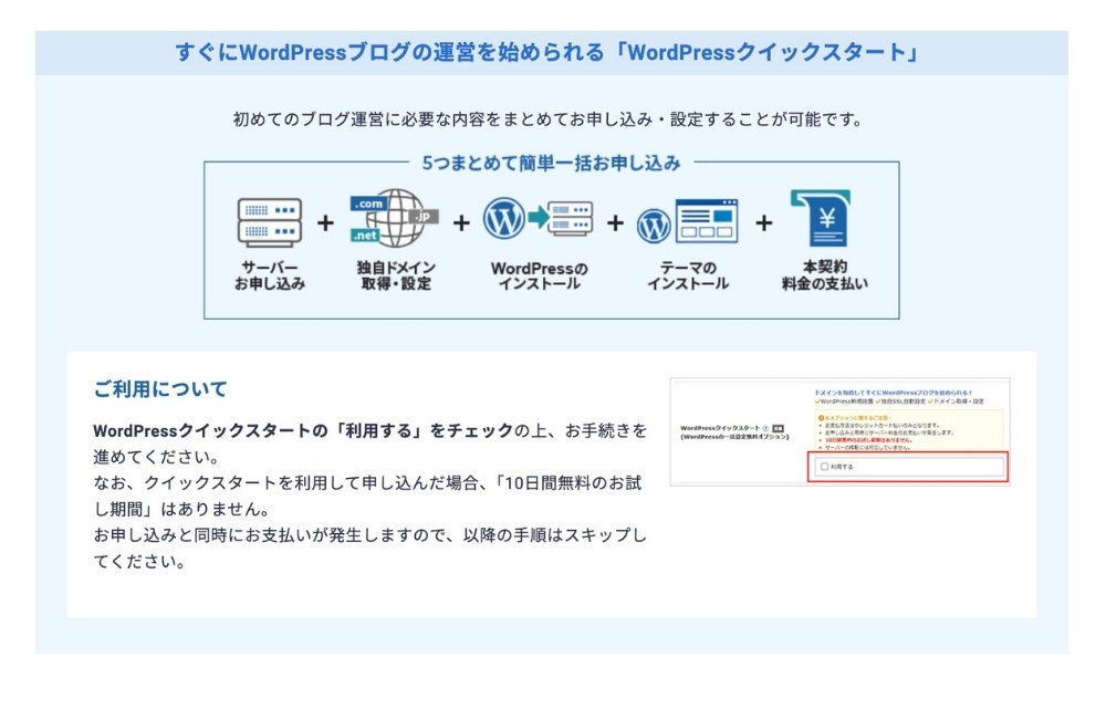 「WordPressクイックスタート」機能により、専門知識がなくても約10分でWordPressサイトを開設できるため、すぐにサイト制作を始められます。