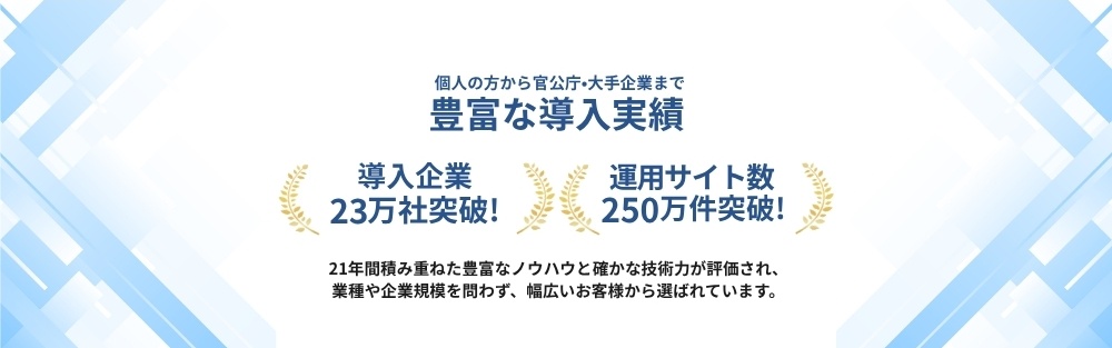 サーバー運用21年以上、サイト数250万以上サーバー稼働率は創業以来99.99%以上